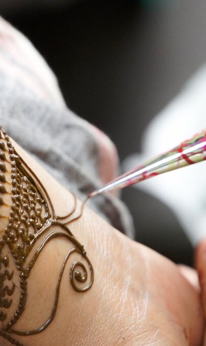 Bei Henna handelt es sich um ein reines Naturprodukt, das sich vor allem durch seinen rotbraunen Farbton definiert. Für die Entstehung der Henna-Paste werden Blätter des Hennastrauchs zu Pulver verarbeitet und mit Wasser angerührt. Die Hautverzierung ist nicht schädlich, sofern es sich um reines, natürliches Henna handelt. Chemische Substanzen wie p-Phenylendiamin (PPD) sollten vermieden werden.