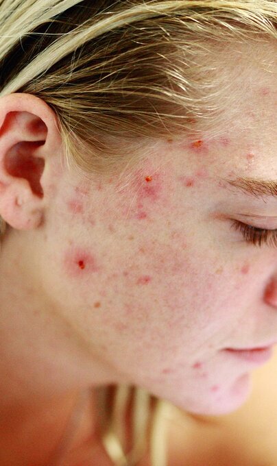 Typisch für Akne sind Papeln, Pusteln und Mikrokomedonen. Bei der Akne handelt es sich um eine chronisch-entzündliche Erkrankung.